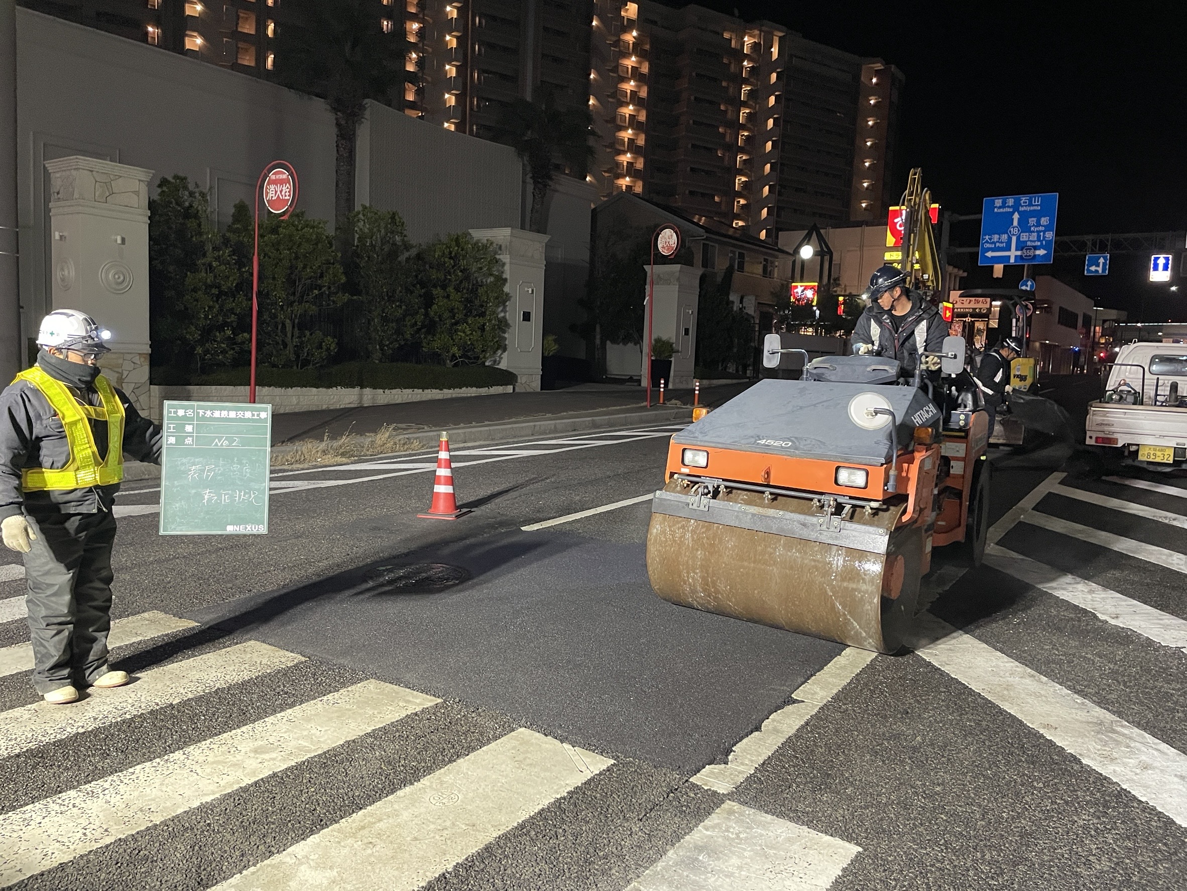 こちらの写真は2025年1月に竣工した大津市下水道鉄蓋交換工事の様子です。